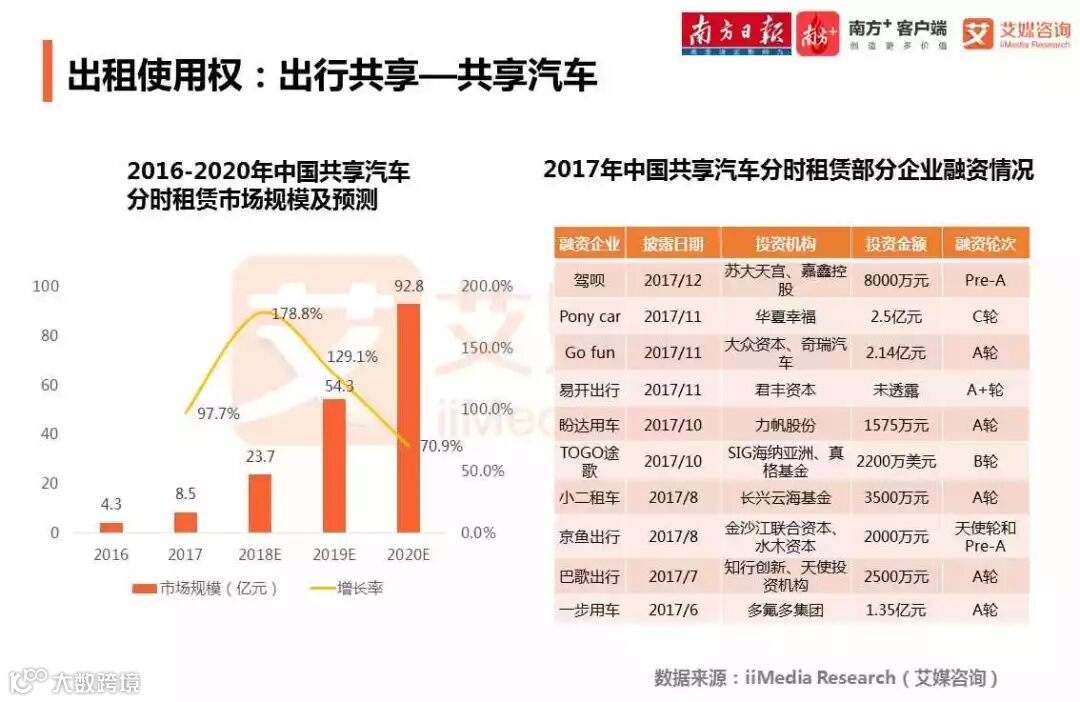 分时租赁市场规模全面放缓,预计2020年中国共享汽车市场规模达92.8亿元。