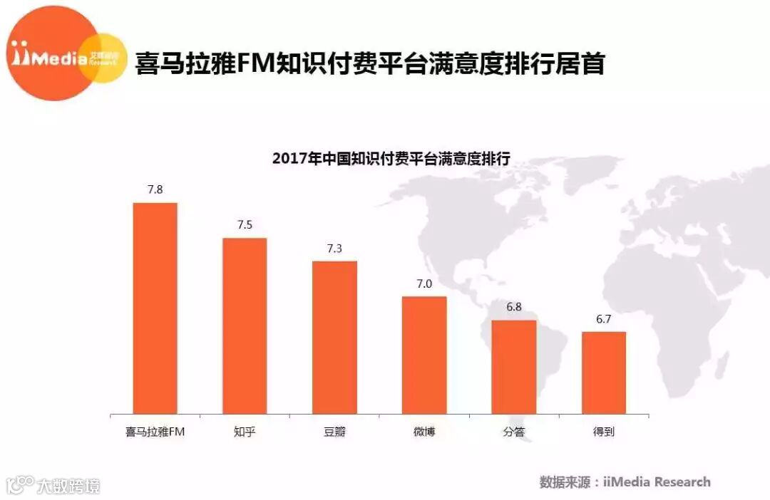 喜马拉雅FM知识付费平台满意度排行居首