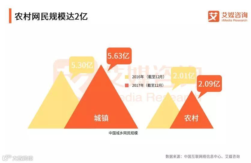 数据显示,截至2017年12月,我国农村网民占比为27.0%,用户规模达到2.09亿人。城镇网民占比72.9%,规模为5.63亿人。网络普及率方面,城乡互联网普及率持续提升,但城乡差距仍然较大。农村互联网普及率上升至4.0%,城镇互联网普及率则为6.2%,全国非网民规模为6.59亿,农村人口是非网民的主要组成部分。艾媒咨询分析师认为,随着经济发展水平的提高和网络基础设施的建设,农村网民规模将持续增长,城乡互联网普及率差距将逐步缩小。