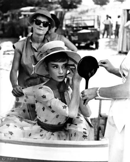 1956年,AudreyHepburn,在《战争与和平》剧组
