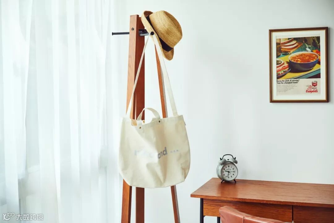 不仅是杂货绿植,衣帽架上富有生活气息的帆布包和草编帽,也能成为点亮空间的一抹色彩。