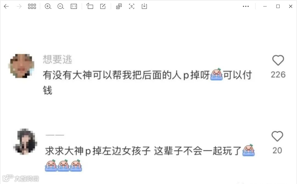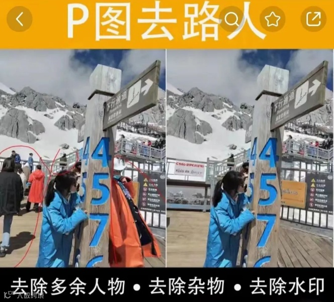 我朋友是做旅游业务的,后来,他发现,出来旅游的人,都很喜欢拍照,但是,拍照的时候,难免会拍到无关紧要的人。
