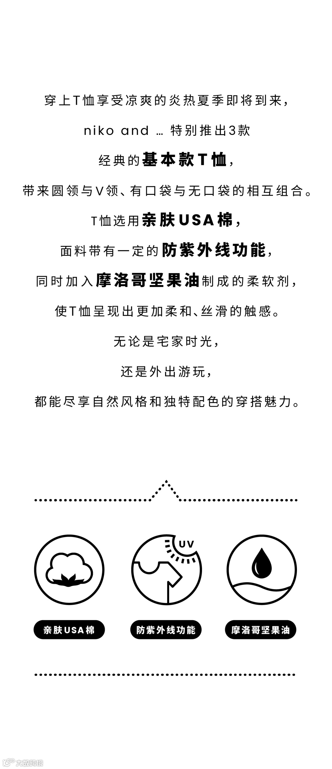 导读:具有一定防紫外线功能的亲肤USA棉T恤系列