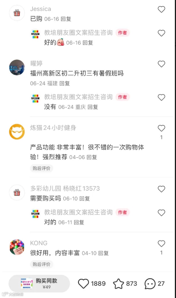 私域卖的话,价格可以稍微定高点,搞个59、69,都是没问题的,毕竟做这种教培类的客户,不缺钱,几十块,对他们来说,眼睛都不会眨一下的。