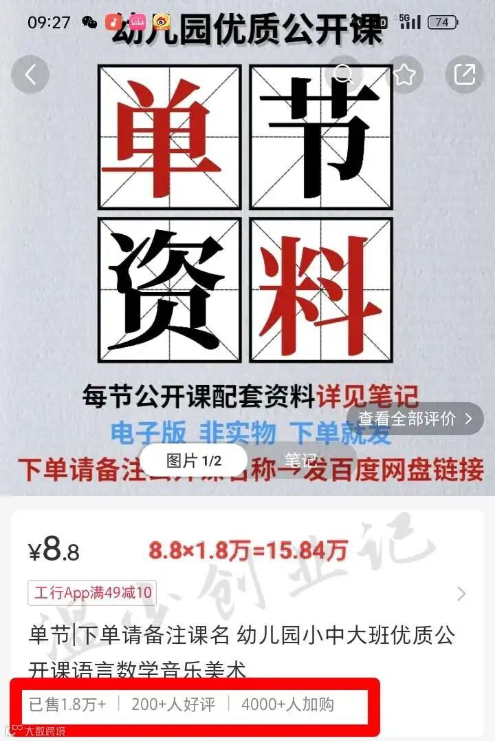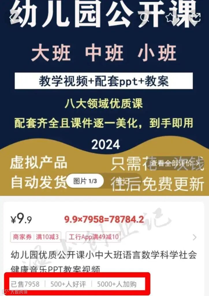 而且,某书的幼师用户也多,花不到10块钱的价格,买一份这么详细的幼儿园公开课资料,有啥难?