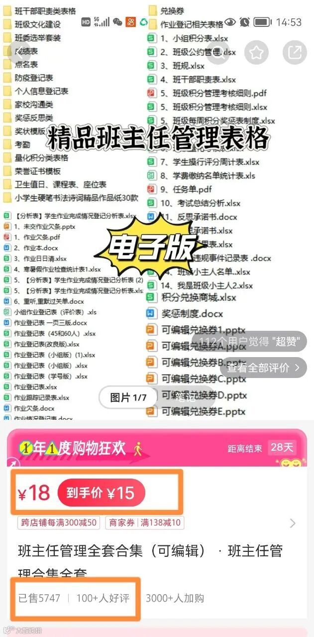 看到没,这个博主,做的班主任管理表格,客单价是15,卖了5747份,挣了86205。
