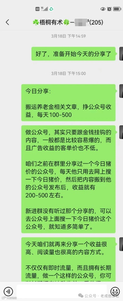 其实,在3月18日的时候,我在社群分享了一个“搬运养老金相关文章,挣公众号收益,每天100—500”这样的项目。