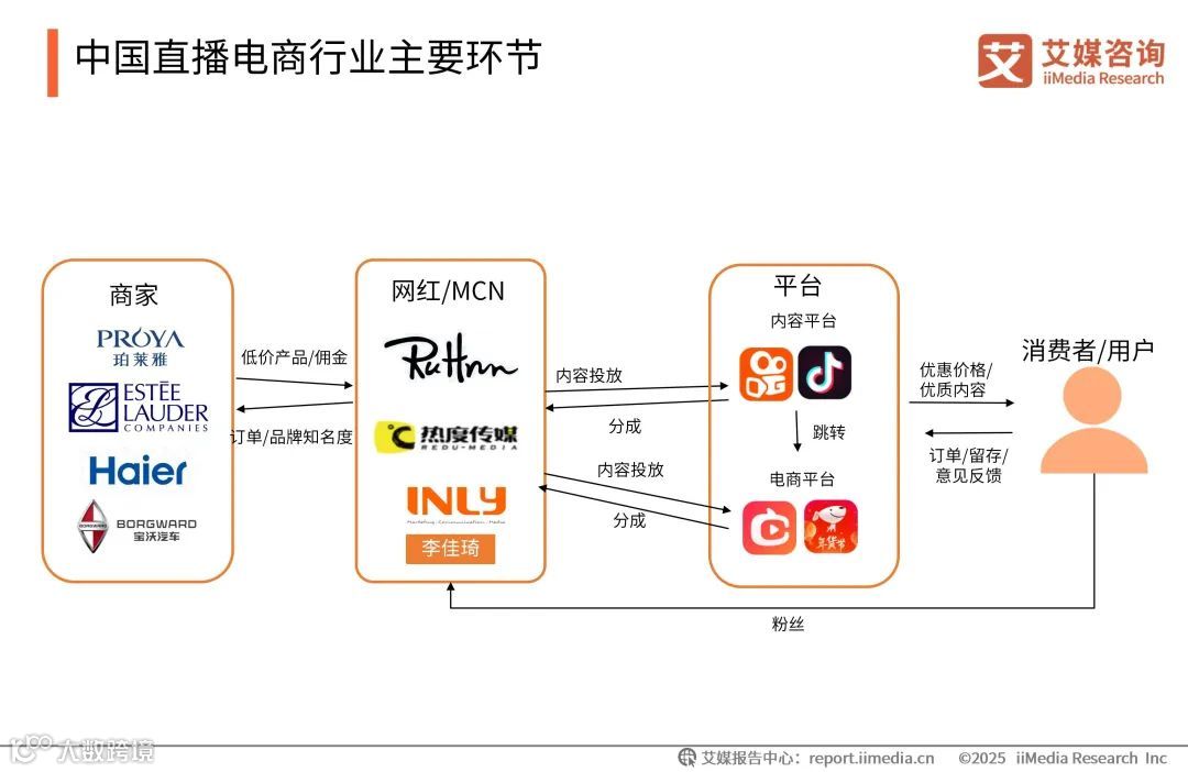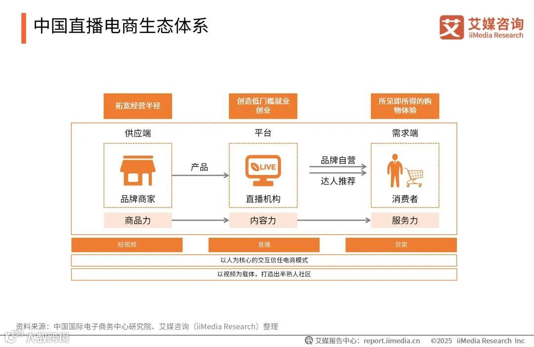 最后,报告从行业转型、运营模式转变、主播资源整合、内容与产品质量提升等方向,就直播电商行业的发展趋势进行了解读。艾媒咨询分析师认为,直播电商逐渐以产品为核心,通过对产品工艺解析、用户互动等方式增强消费者信任,形成“货找人”的精准匹配逻辑。平台通过算法优化与政策扶持,逐步降低品牌产品对头部主播的依赖,推动商家构建自有流量池。直播电商的竞争重心正从依赖头部主播的流量红利转向品牌自播的体系化运营。