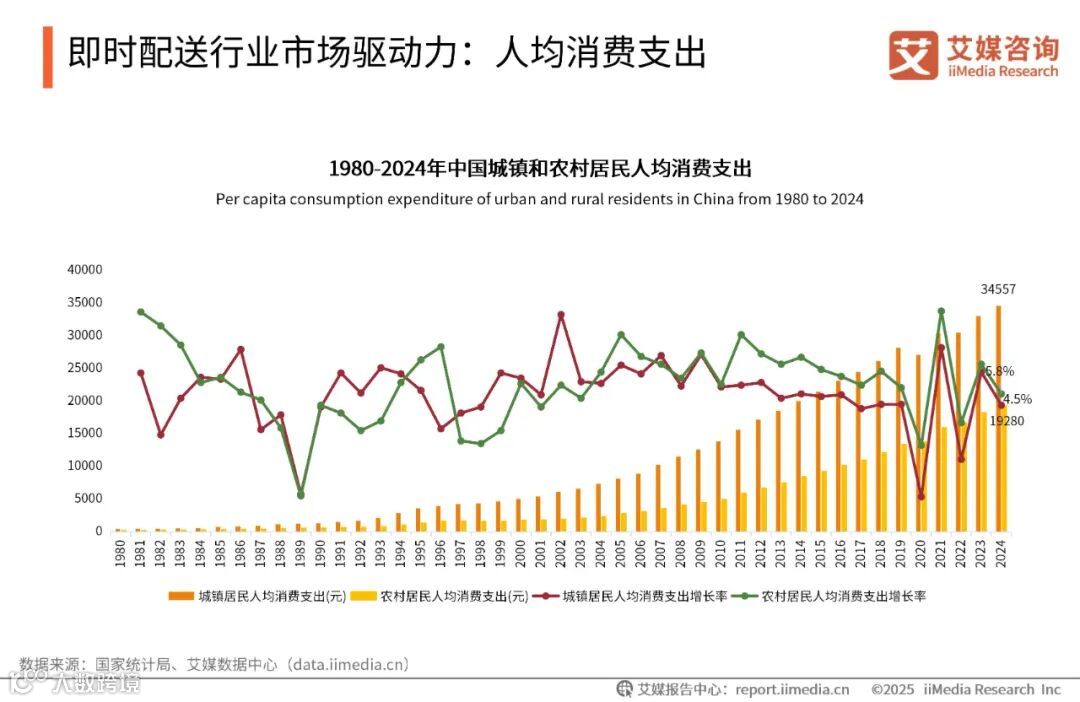 艾媒咨询分析师认为,随着居民收入和消费支出的增长,消费结构逐渐向“品质化+服务化”升级,消费者对即时配送服务的时效性和品牌力提出了更高要求。
