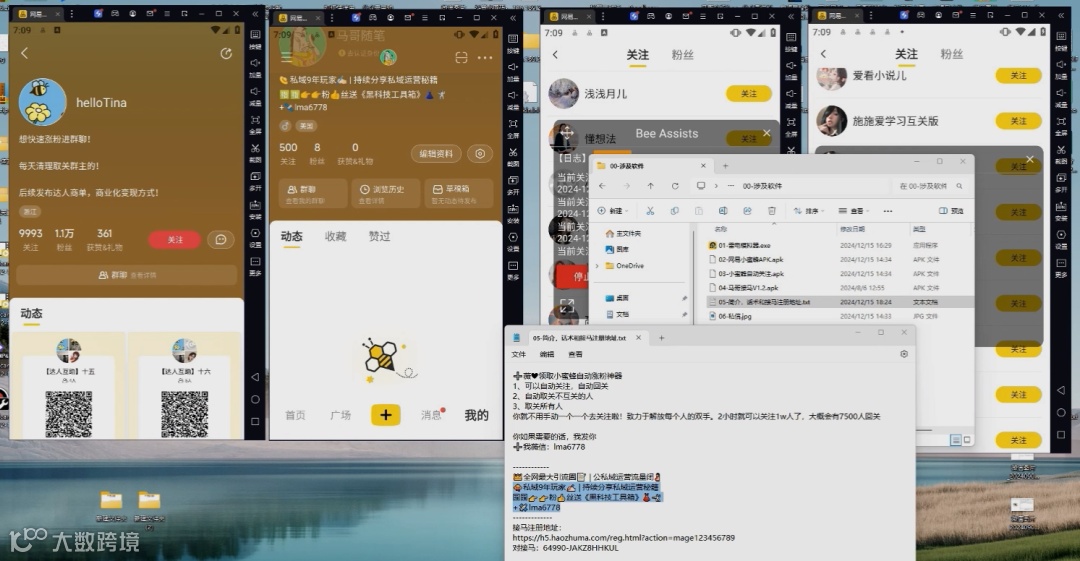 包括我录制的小蜜蜂引流创业粉教程里介绍的“小蜜蜂”引流,都是使用此平台结合手机模拟器实现无限注册的。