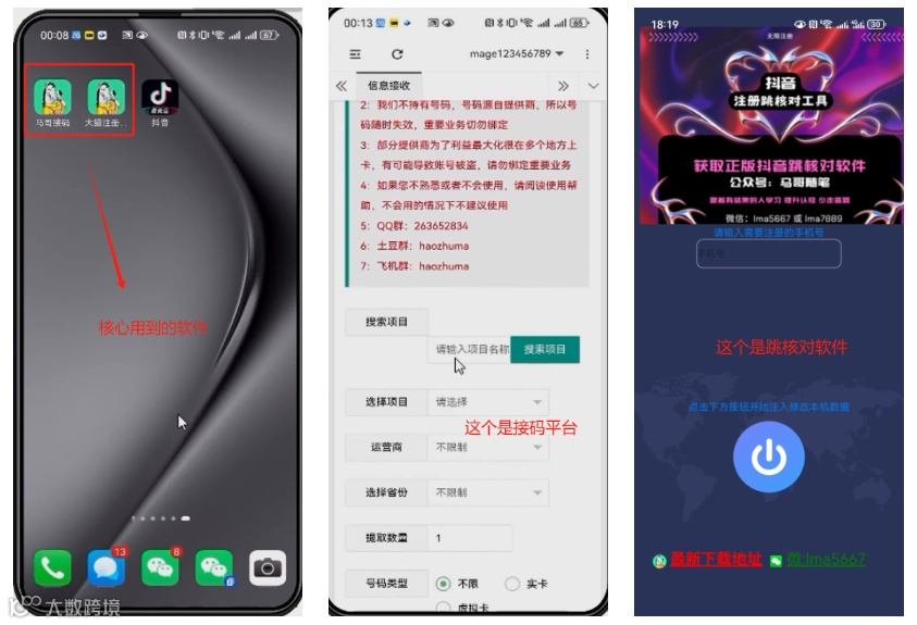 教程中一共涉及两个软件,一个是“接码平台”另一个是“跳核对软件”