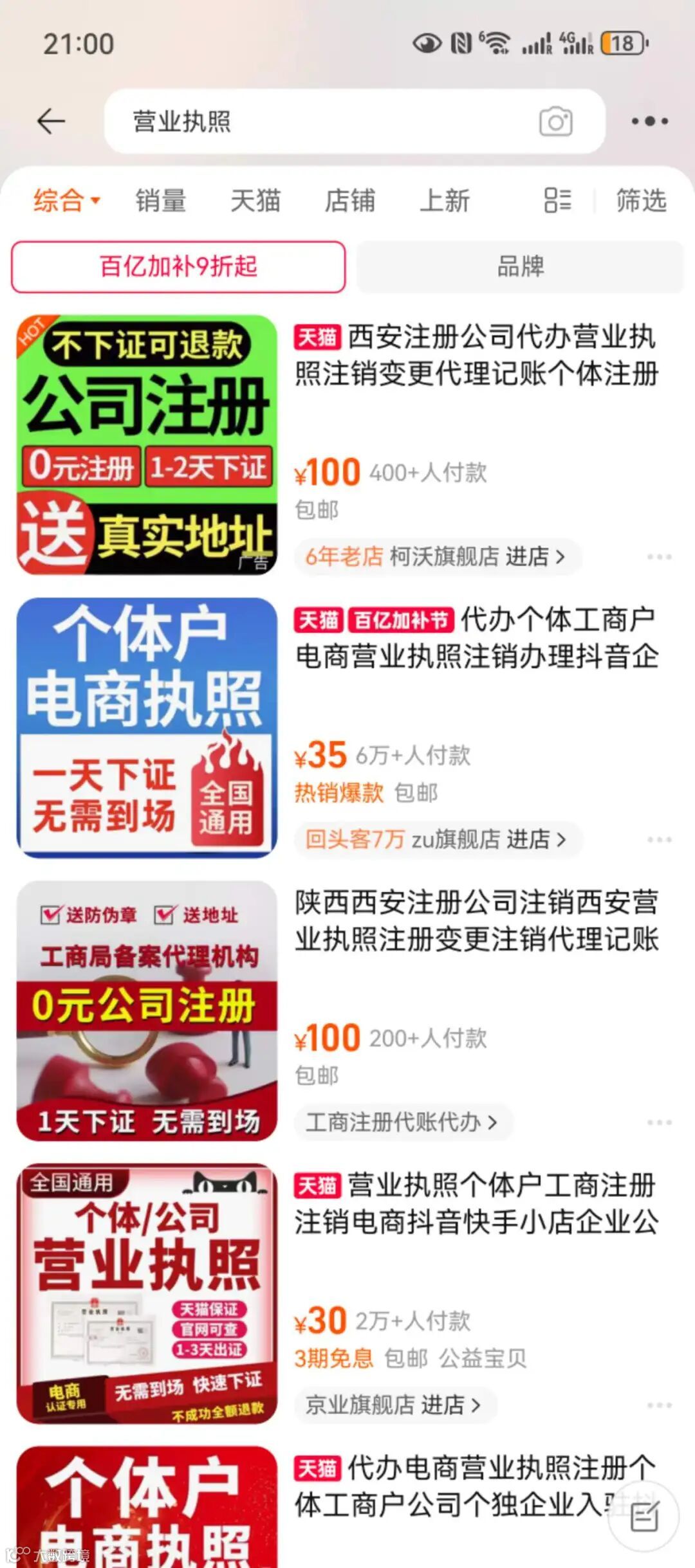 公司营业执照注册可以淘宝解决, 但需要注意的是,办理营业执照以后,是需要每月报税的,年底也需要年审,报税和年审,一年要几百块。