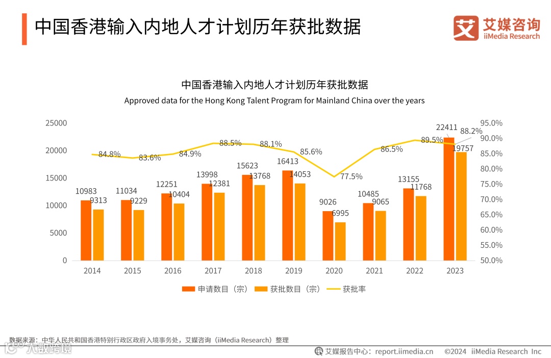 市场需求:2023年香港各项输入人才计划整体获批率约为61.3%,市场需求持续增长