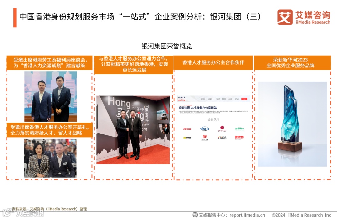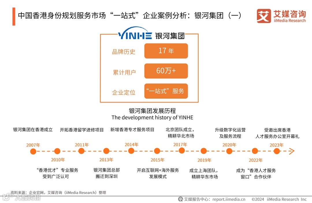 银河集团成立于2007年,目前拥有500多人规模,总部位于深圳,同时在香港、北京、上海设立有分公司。成立17年来,银河专注于香港身份服务领域,积累了超60万用户和丰富的案例经验,并形成涵盖香港身份、教育、创业、就业、港宝、房产等“一站式”服务体系。凭借良好服务和口碑,银河集团多次受邀参加港府重要活动,并成为香港人才服务办公室官方合作伙伴和荣获新华网2023全国优秀服务品牌。