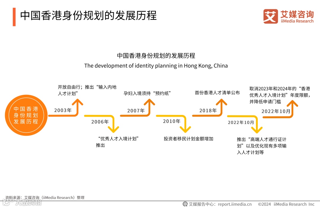 中国香港身份规划在过去二十年间经历了显著的发展与变革。2003年,香港不仅出台了自由行政策以促进两地交流,更是推出了“输入内地人才计划”;2006年,为吸引优秀外地人才来香港定居,香港推出“优秀人才入境计划”;2022年,香港特区政府宣布实施“抢企业”、“抢人才”相关举措,措施包括成立“引进重点企业办公室”、推出“高端人才通行证计划”以及优化现有多项输入人才计划等。此外,香港还宣布取消2023年和2024年的“香港优秀人才入境计划”年度限额,同时优化审批程序,以吸引更多世界级优才来港。