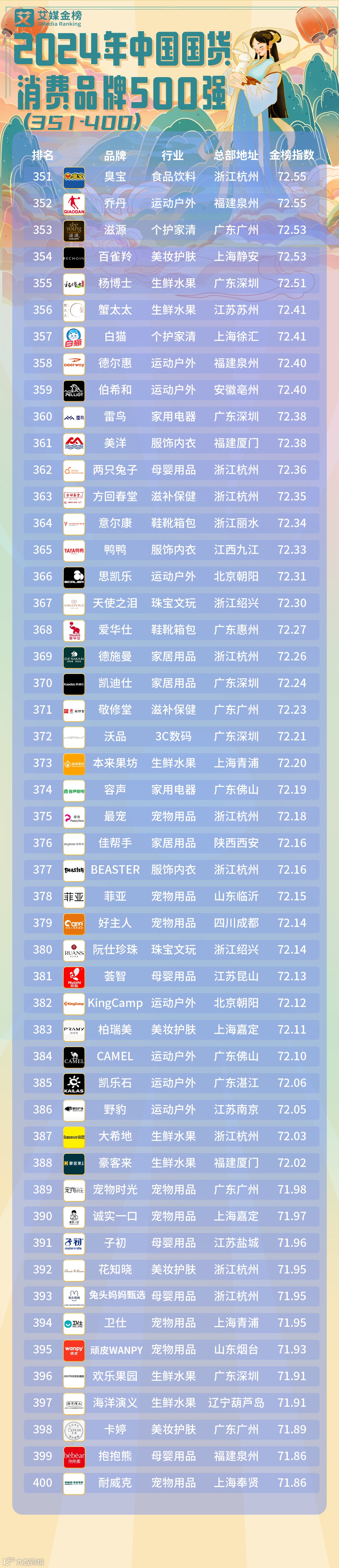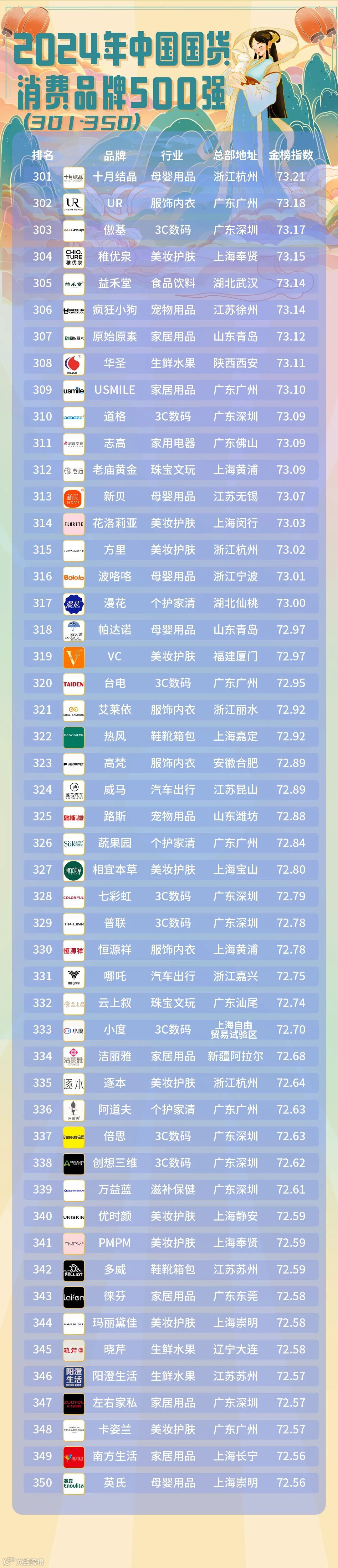 2024年中国国货消费品牌500强榜省份分布