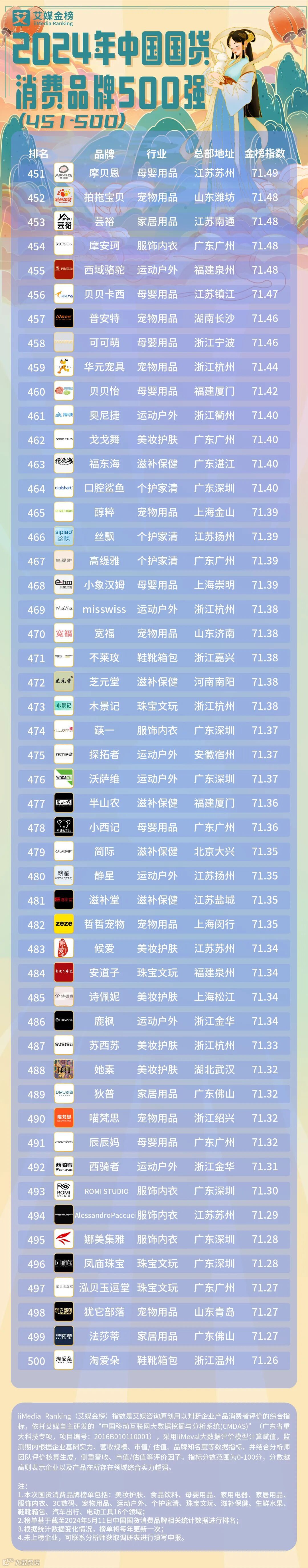 在聚焦于头部品牌展现的国货力量之余,依托《2024年中国国货消费品牌500强》榜单,可以发现国货品牌的卓越表现遍布各大行业,彰显了中国品牌在新时代背景下的蓬勃生机与无限潜力。