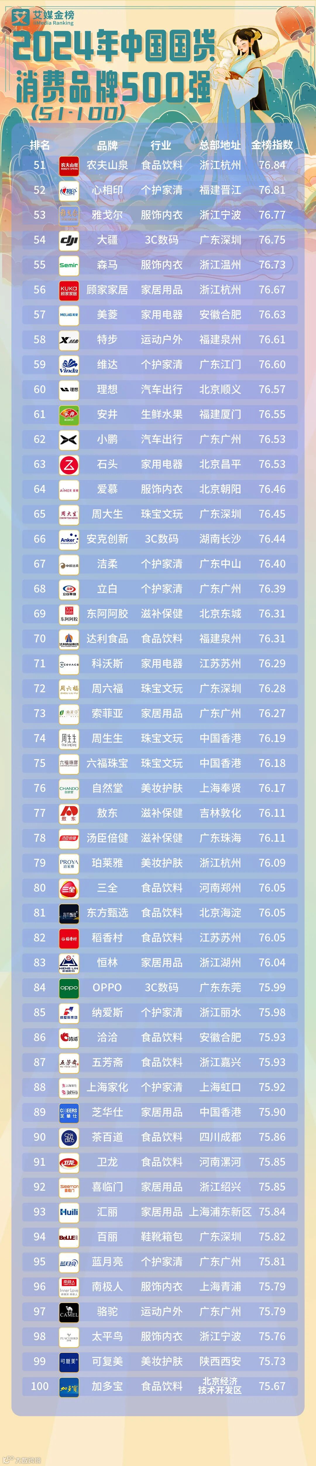 在3C数码领域,华为、小米、荣耀和中兴引领国货风潮;家用电器行业,美的、海尔智家、格力、TCL四大品牌占据前二十之四。汽车出行市场中,比亚迪、上汽、一汽、长城、长安、奇瑞、广汽正强势崛起,展现国货实力。