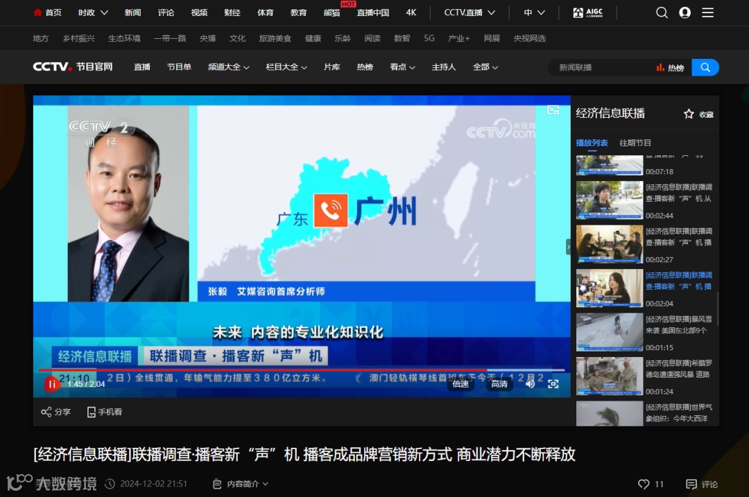 针对声音经济所带来播客行业的机会及发展趋势,艾媒咨询首席分析师张毅在2024年12月2日接受中央电视台《经济信息联播》节目采访时指出,相比较为成熟的短视频、长视频等行业,播客的商业模式、变现能力还不完全成熟。未来,内容的专业化、知识化、个性化以及差异化将是播客平台获取更广泛用户的前提。提高制作效率、多元化收入模式、创新内容生产等,仍然是当前行业发展过程中需要关注和解决的关键点。