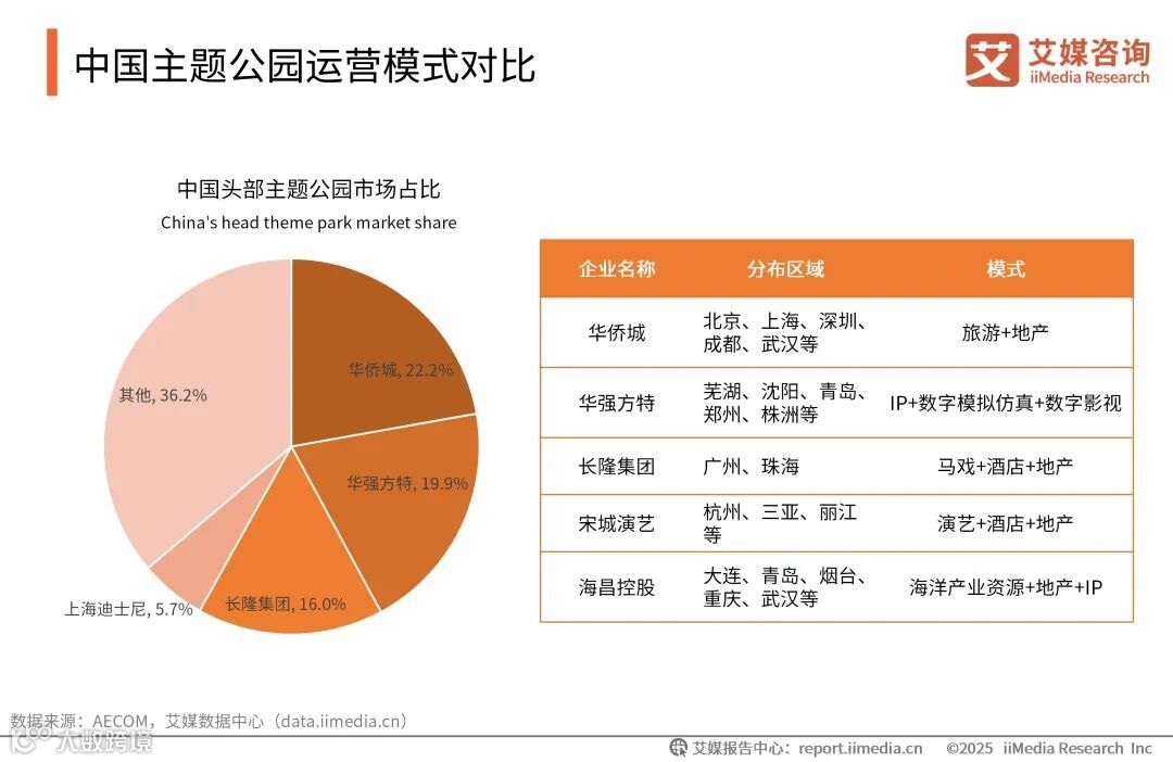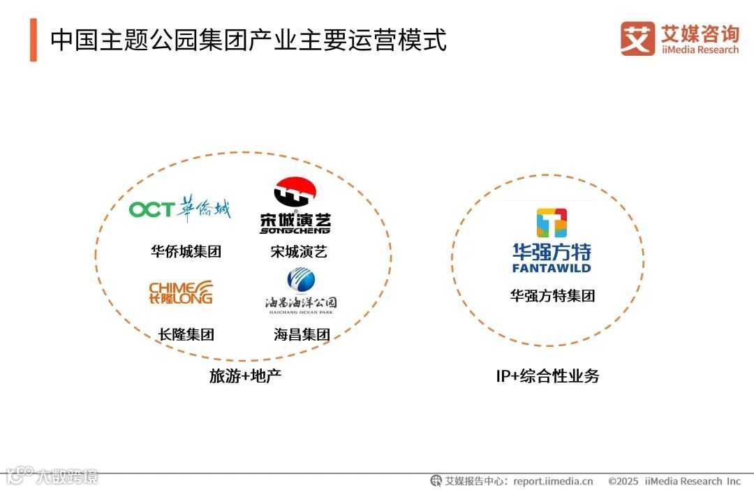 主题公园具有较强的经济外部性与社会影响力,早期中国不少地方政府将其作为重点招商对象,提供税费减免等优惠政策。通过“旅游+地产”的开发模式,越来越多的房企获取了大量低成本的土地资源,在周边开发住宅以弥补主题公园开发运营成本,典型代表是华侨城和万达。中国主题公园运营商中大部分为地产商,主题公园运营模式以“旅游+地产”为主,华强方特是中国走“IP+综合性业务”较为成功的一家企业。
