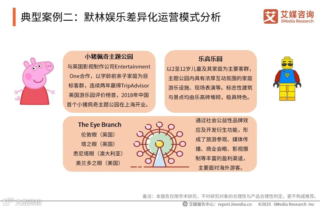 默林娱乐集团旗下IP较为多元,通过原创、收并购、协议授权等模式取得独立、相对成熟的IP资源。IP多元化结构导致主题公园多元化,动物类(如Sea Life海洋馆)、卡通人物类(如小猪佩奇主题公园)、景观类(如伦敦眼)、机械游戏类(如海德主题公园)主题公园均有涉及,目标客群差异较大。