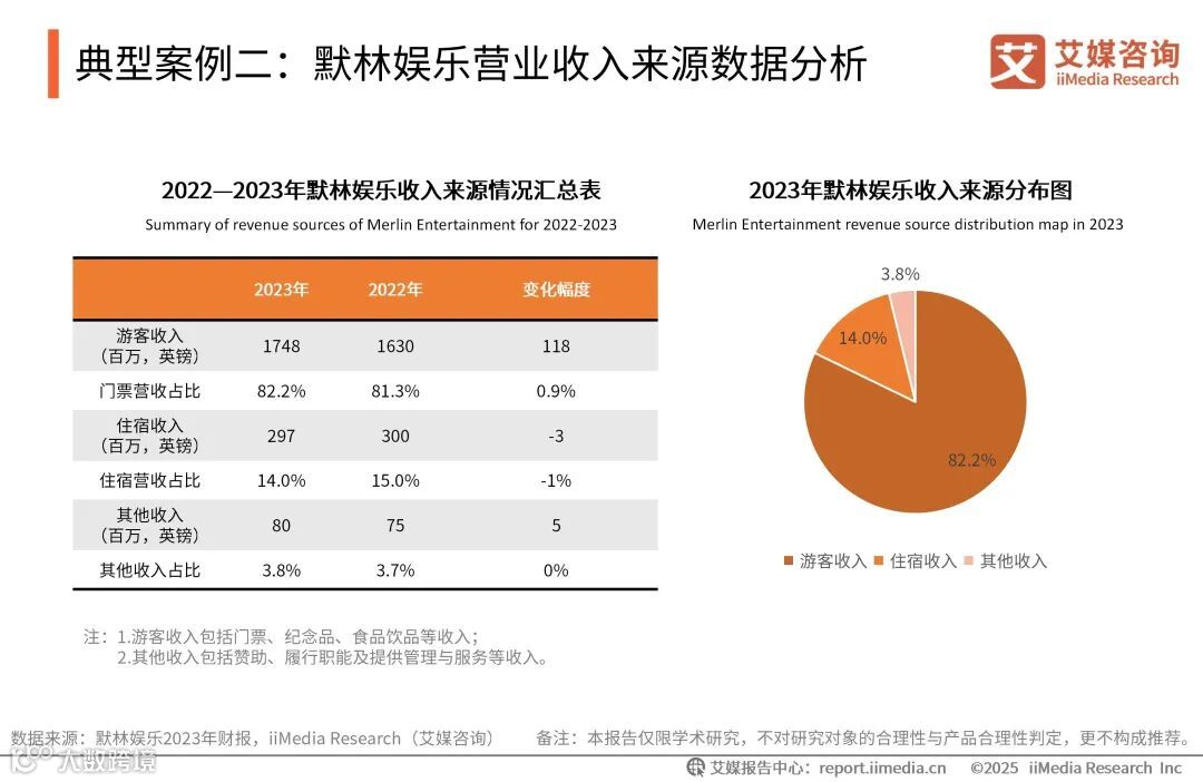默林娱乐主要景点包括乐高主题乐园、杜莎夫人蜡像馆、伦敦眼、海洋探索中心、Gardaland及伦敦地牢等近20个优质景点品牌,分布在4大洲23个国家,超过120个环球游乐景点为游客提供服务。默林娱乐2023年82.2%营业收入是游客收入,同比增长0.9%。游客收入包含门票收入、食物饮品收入、纪念品收入等,是默林娱乐的主要收入来源。住宿收入有所下降,幅度为1%,其他收入变化较为平稳。
