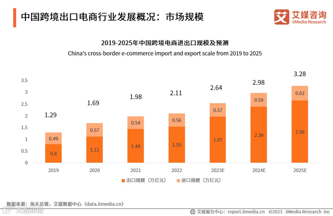 规模:2022年中国货物贸易进出口总值42.07万亿元,2025年跨境电商出口规模有望达2.66万亿元
