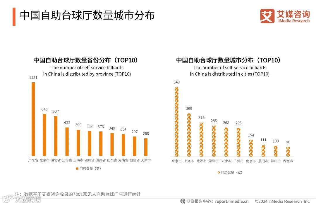 iiMedia Research(艾媒咨询)数据显示,从省份分布来看,广东省自助台球厅数量最高;从城市分布来看,北京市自助台球厅数量达到640家,排名第一。自助台球厅在一线城市和新一线城市已有一定规模,其开店布局明显受到城市经济发展水平和居民消费能力的驱动。目前,三四线及以下城市的消费者需求并未被满足,预计自助台球厅未来的增长点将转向下沉市场。