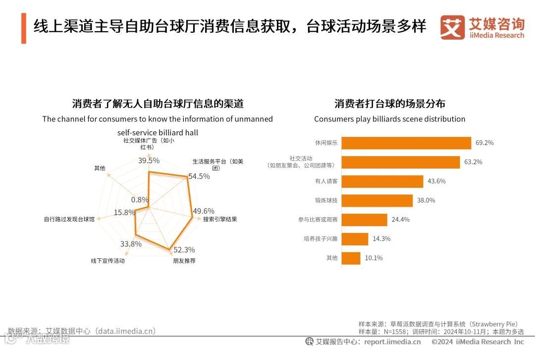 线上渠道主导自助台球厅消费信息获取,台球活动场景多样