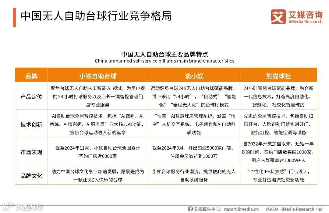 通过结合先进的人工智能技术和物联网设备,中国无人自助台球行业正以前所未有的速度发展。技术创新正成为台球行业发展的核心驱动力,如小铁自助台球的AI自助台球全屋智控技术体现了行业对智能化的重视。市场表现方面,无人自助台球门店数量在全国范围内持续扩张,例如,截至2024年11月,小铁自助台球全国累计签约门店已近6000家。