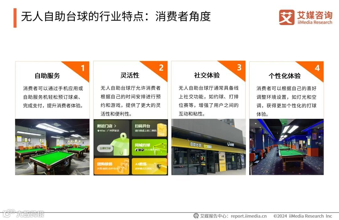随着科技的飞速发展和消费者对智能化产品需求的日益增长,台球行业正迅速迈向AI智能化时代。部分无人自助台球厅通过提供全屋智能软硬件设备代替人工管理,实现24小时营业,还引入AI教练、AI裁判等功能提升用户体验。无人自助台球厅通过技术赋能,增强了台球的社交功能,消费者可以轻松预约、自由打球,并在线上社区中互动,这些功能不仅提高了用户粘性,还显著提升了消费者满意度和回头率。
