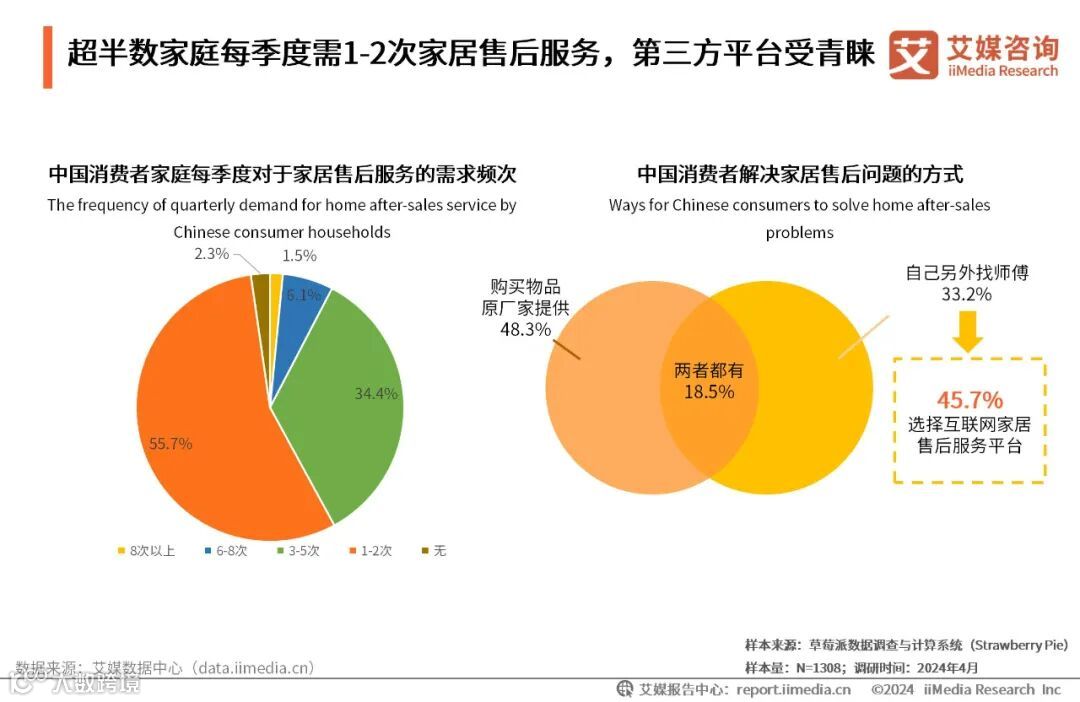 超半数家庭每季度需1-2次家居售后服务,第三方平台受青睐