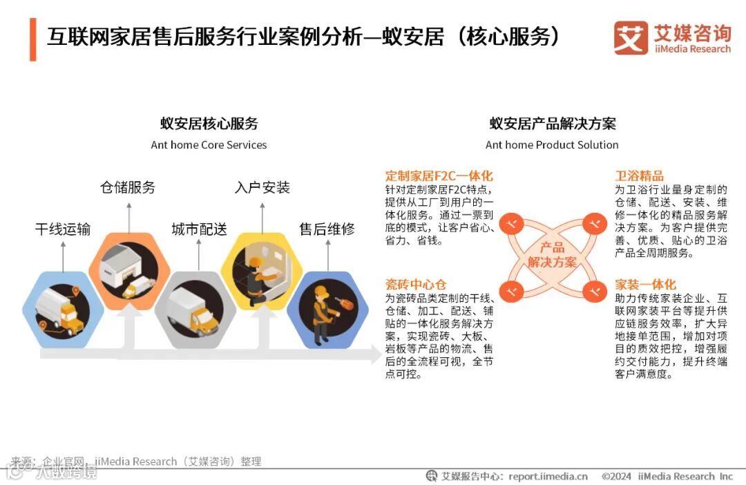 依托 20余年家居建材行业服务经验,蚁安居搭建出干线运输、仓储管理、城市配送、入户安装及售后维修的全流程服务网络,提供定制家居F2C一体化服务解决方案、卫浴精品服务解决方案、瓷砖中心仓服务解决方案和家装一体化服务解决方案。