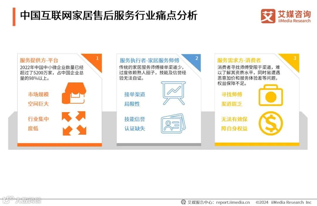 中国的中小微企业数量庞大,至2022年底已突破5200万家,占中国企业总量的98%以上,但由于行业集中度偏低,在家装家居这一细分领域,部分中小微企业的售后服务体系存在短板,消费者往往面临服务获取渠道狭窄、信息不对称的问题。且传统渠道师傅的服务质量参差不齐,价格不透明,甚至会出现随意加价的现象,损害消费者的权益。同时,传统家居服务行业的师傅们接单渠道较为单一,大多依赖个人人脉网络和口碑传播,这种模式不利于他们的技能认证、信誉积累以及业务拓展。家居售后服务行业亟需搭建集师傅资质认证、服务标准化、价格透明化以及消费者评价于一体的综合服务平台,以解决上述痛点。