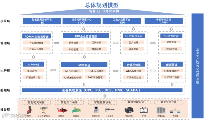 针对大型企业,才匠智能提供一套全面、高效、可定制的智能制造解决方案。该方案以才匠工业互联网平台为基础,涵盖设备层、感知层、执行层、管理层和决策层,利用MES、QMS、EAM、WMS/WCS、SRM等核心模块,实现生产过程管理、质量管理、设备管理、仓储管理、供应链管理、成本管理等功能。方案通过优化业务流程、提高资源利用率、减少人工依赖、提升人员工作效率、优化原料质量管控、加强生产过程管控、提升合格率、产品质量追溯、减少原料浪费、降低成本、提高效率、提升品质、节能降耗、优化供应链管理等方面,为企业带来显著的价值。