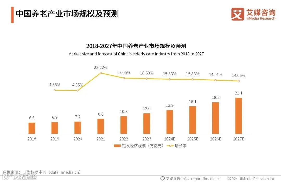 iiMedia Research(艾媒咨询)数据显示,2023年中国养老产业市场规模为12.0万亿元,同比增长16.50%,预计2024年中国养老产业市场规模为13.9万亿元,2027年市场规模有望达20万亿元以上。新一代中老年人受教育程度普遍较高,退休后更加注重生活品质和社交需求,普遍愿意为自己的兴趣爱好买单,为银发经济市场的发展提供了良好的条件。