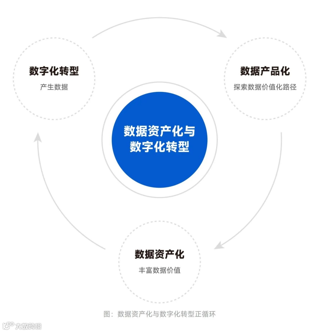 ● 数据资产化:以拓展数据经济效益和应用赋能为导向,通过价值评估、高效运营等方式,让数据产品实现内部应用、共享开放、流通交易等,推动数据价值变现。