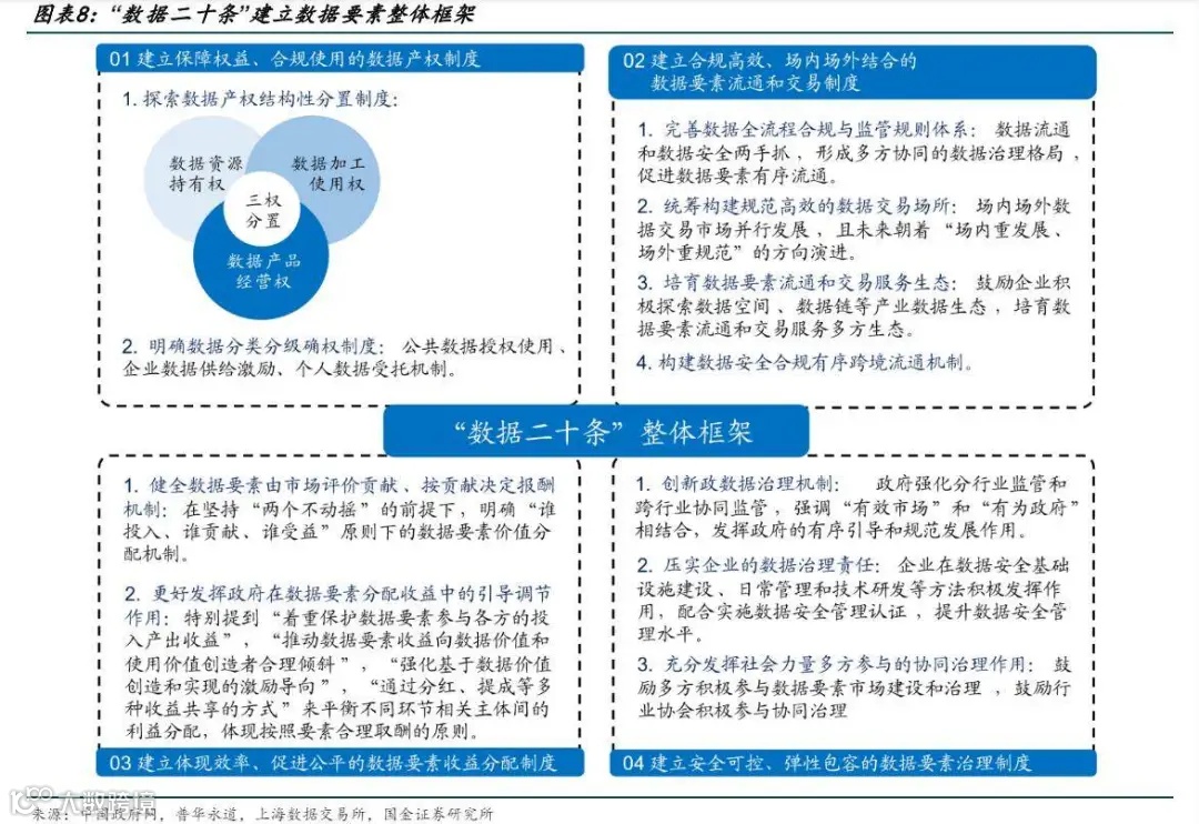 在2022年12月份发布的“数据20条”中,提出了数据的基础制度——关于构建数据基础制度更好发挥数据要素作用的意见,涉及数据的四个基础制度:产权制度、交易制度、分配制度及治理制度,对数据产权做了一个定义。