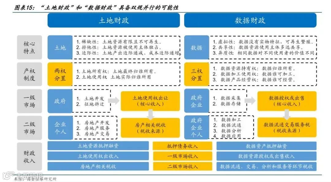 而“数据20条”中也创新性地提出了数据三权的概念——数据资源持有权、数据加工使用权和数据产品经营权。目前数据三权与以上提及的1988年刚确立的土地产权制度情况类似,还处于早期阶段,业内百家争鸣,还未能提出一个统一的看法。