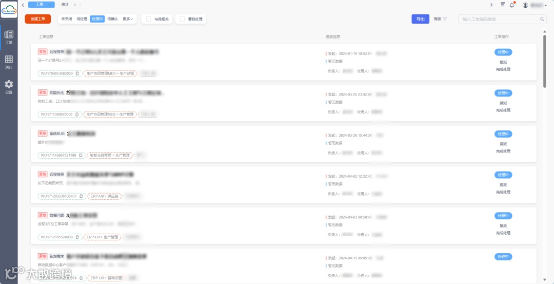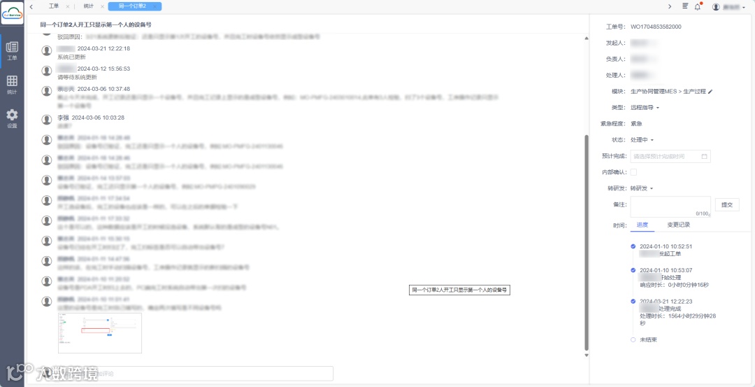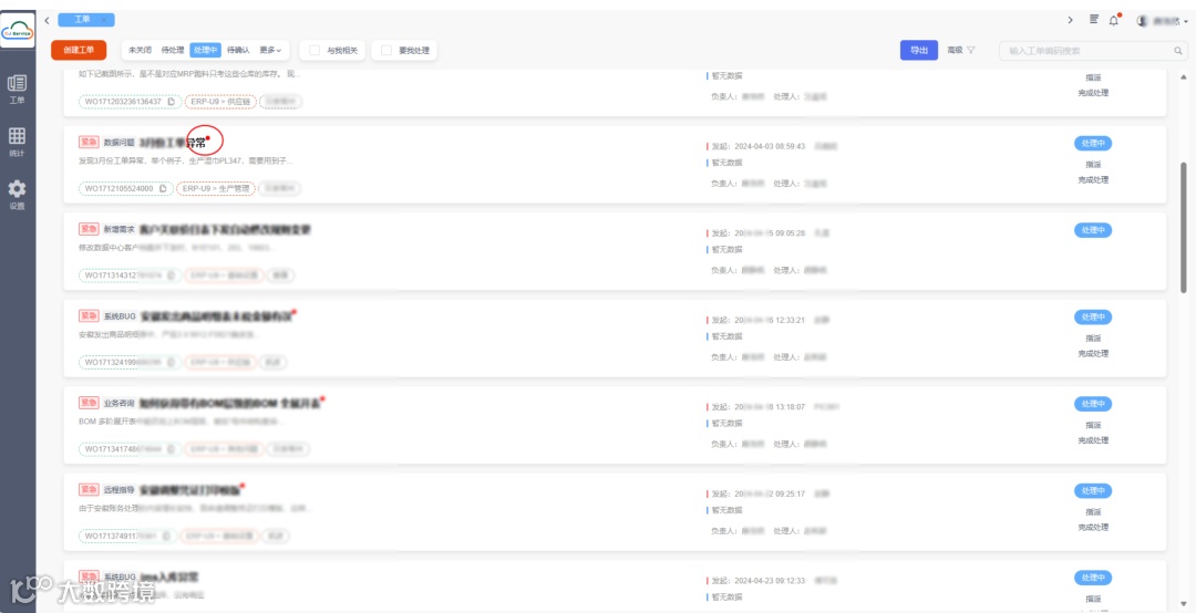 此外,针对有新进度的工单,我们在UI展示上特别增加了醒目的“小红点”标识,以帮助服务人员更加迅速地识别并处理待办工单,提升工作效率。