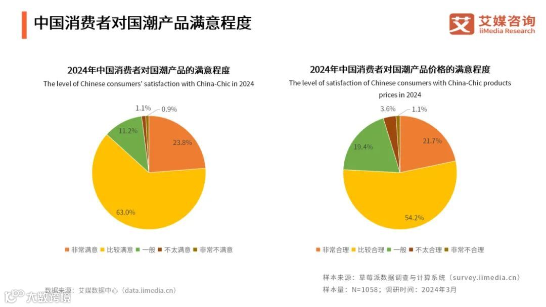 iiMedia Research(艾媒咨询)调研数据显示,中国消费者对国潮产品总体满意度较高,认为市场上的商品定价也较为合理。
