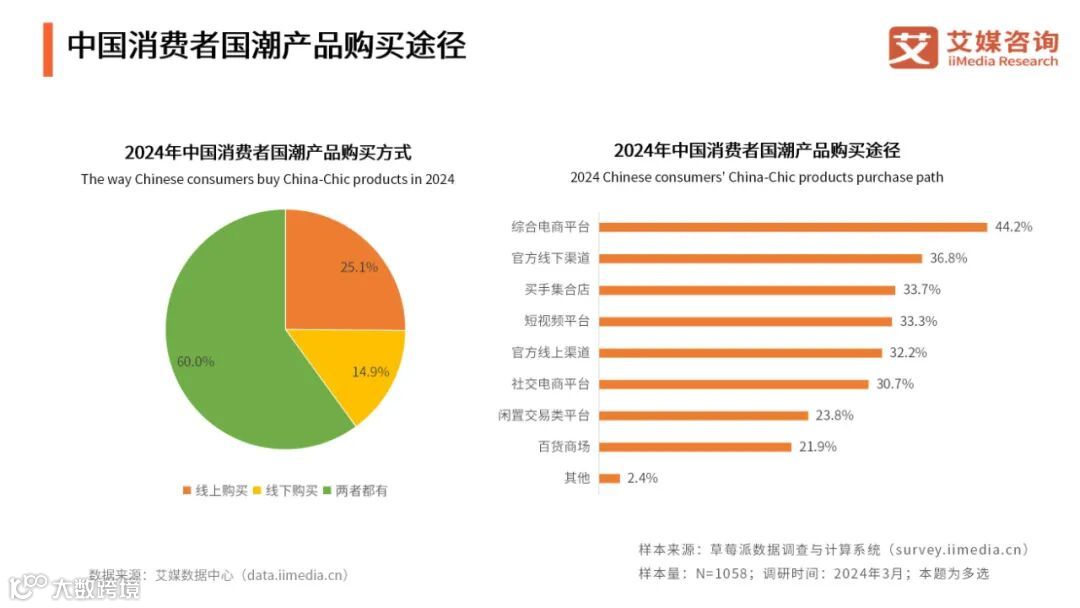 iiMedia Research(艾媒咨询)调研数据显示,消费者购买国潮产品偏好线上渠道。44.2%的消费者更喜欢选择电商平台进行购物。艾媒咨询分析师认为,电商平台的高速发展为国潮品牌带来了更宽广的舞台,亦为消费者提供了丰富的商品选择。