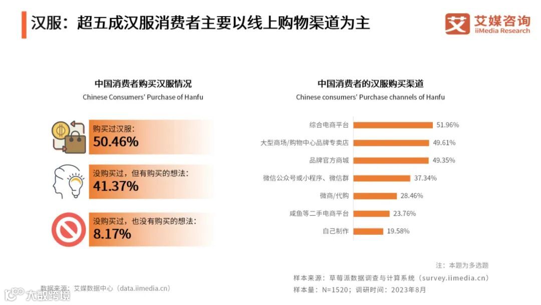 汉服:超五成汉服消费者主要以线上购物渠道为主
