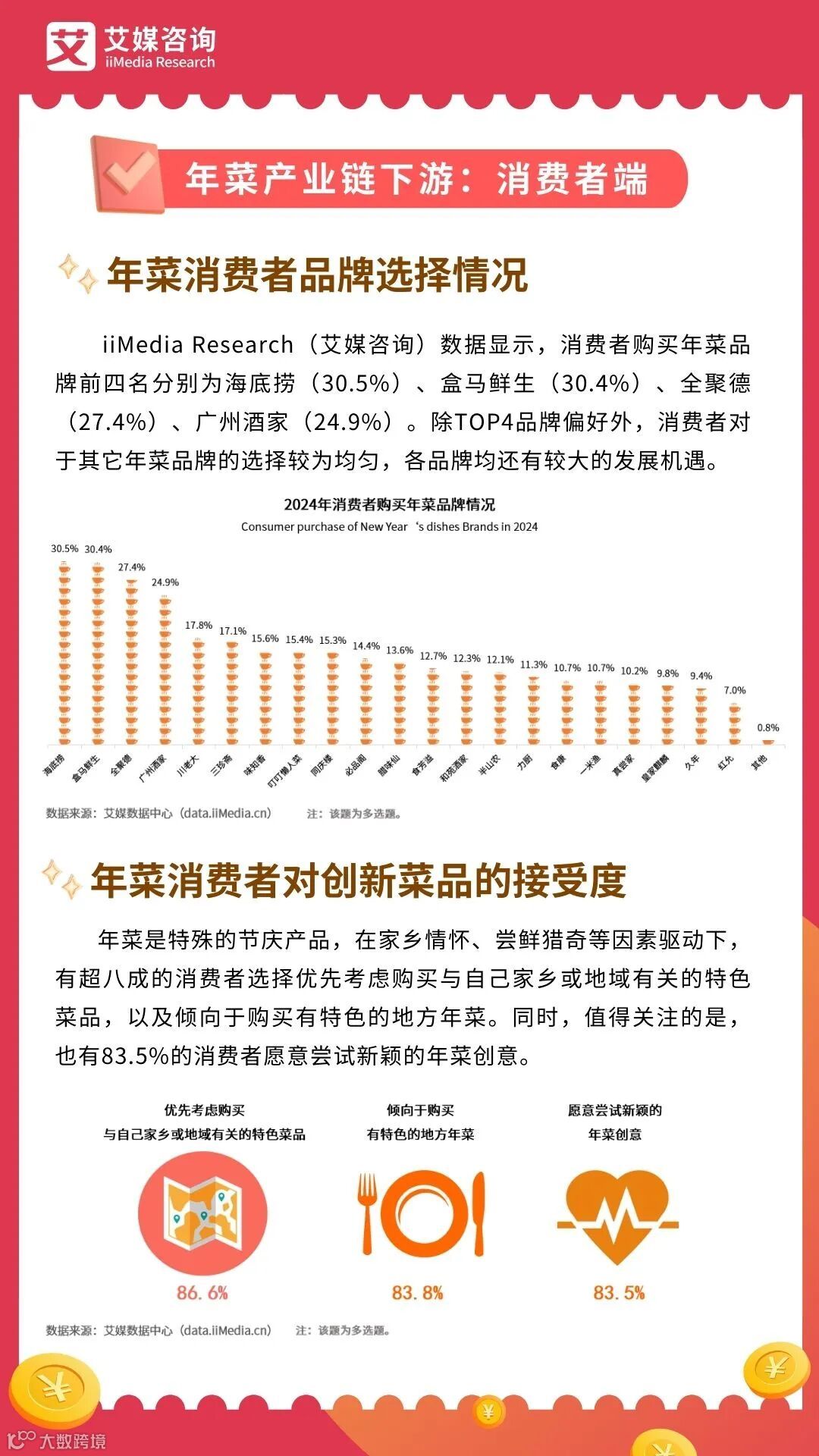 以上内容源自艾媒咨询发布2024年中国新春年菜消费市场研究报告完整版报告共77页,点击文末 阅读原文 或 长按识别下方二维码 可获取报告。
