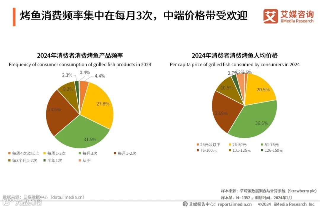 烤鱼消费频率集中在每月3次,中端价格带受欢迎