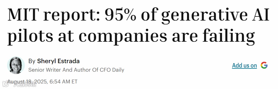 根据MIT 2025年的最新报告,大量企业为了引入AI投入巨资,结果在损益表上却“一无所获”。 究其原因,是因为大多数企业未革新流程,只是把AI当作一个画图玩具或聊天助手,无法带来质的飞跃。