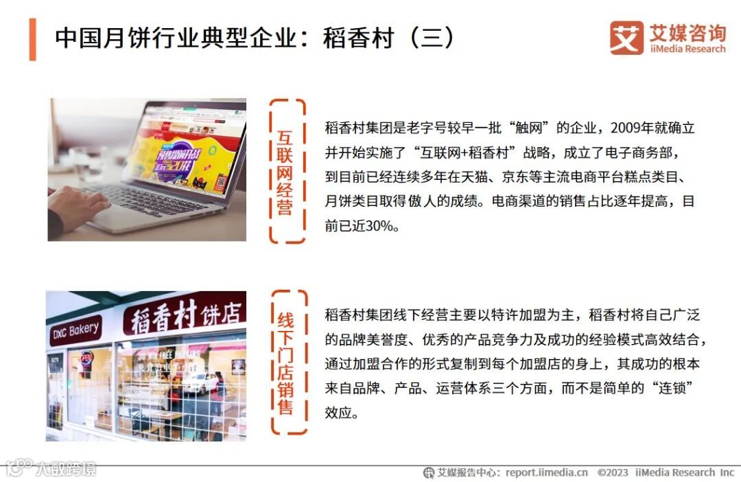 稻香村(苏州),创立于1773年,已持续经营248年,曾经荣获国家首批认定中华老字号企业,以及江苏省级非物质文化遗产等多项荣誉,是国内食品行业历史悠久、具有影响力的品牌之一。稻香村(苏州)集团的产品销售覆盖全国及海外40多个国家。2022年,稻香村月饼产量约为3亿个,2023年同比增长12%以上。