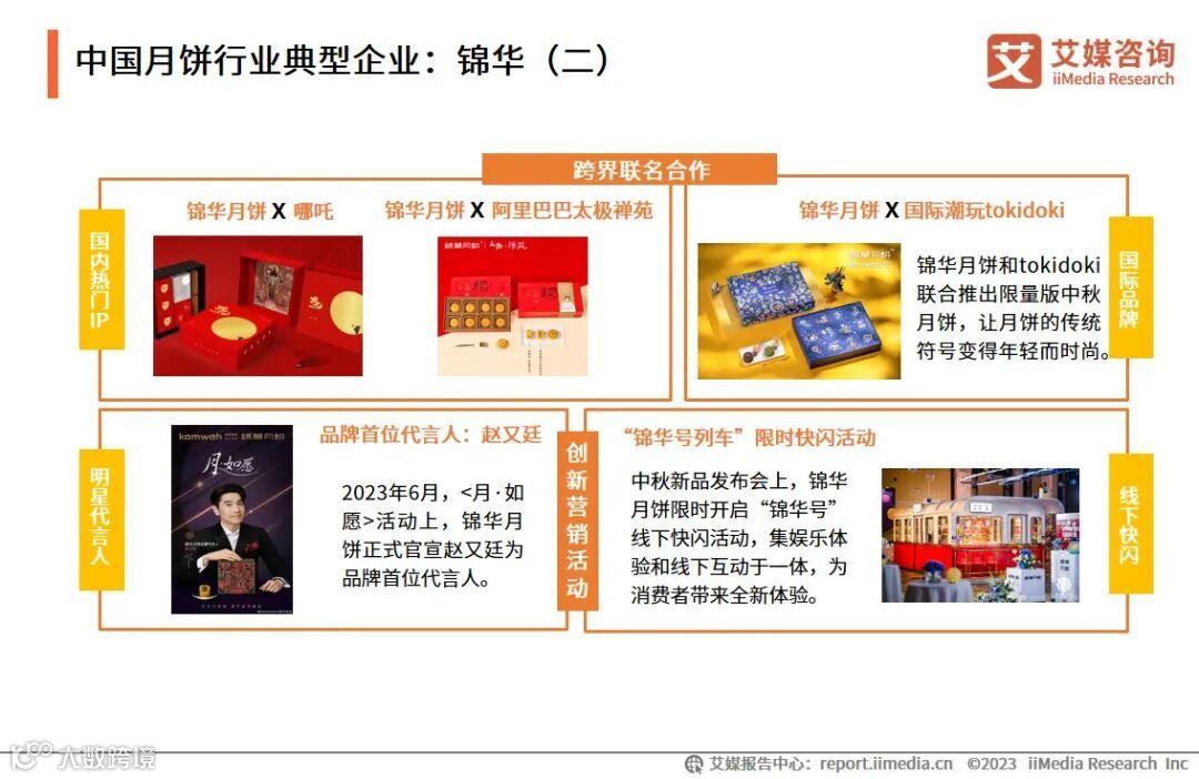 近年来,锦华月饼在跨界联名与线上、线下各渠道的营销活动创新不断。在跨界联名方面,锦华月饼曾与国内热门IP哪吒、阿里巴巴太极禅苑合作,推出中秋月饼礼盒;今年还与潮牌tokidoki联合推出限量版中秋月饼,年轻而时尚。