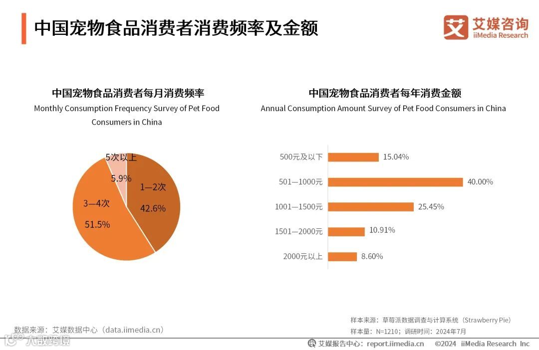 中国宠物食品消费者消费频率及金额