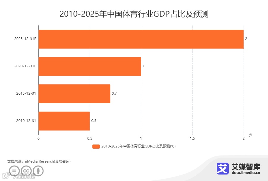 iiMedia Research(艾媒咨询)数据显示,在2010-2025年中国体育行业GDP占比及预测中,中国体育行业GDP占比不断增多,体育行业市场规模将不断扩大,市场发展前景十分良好。
